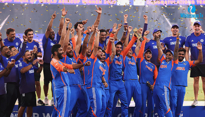 സാങ്കല്പിക കിരീടം ഉയര്ത്തി ഫോട്ടോയ്ക്ക് പോസ് ചെയ്ത് ഇന്ത്യ