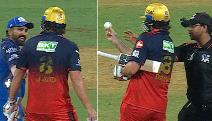 ബാറ്റിങ്ങിനിടെ പന്തെടുത്ത് കറക്കി നോക്കി ടിം ഡേവിഡ്; വിവാദം ഒഴിയാതെ ഐപിൽ