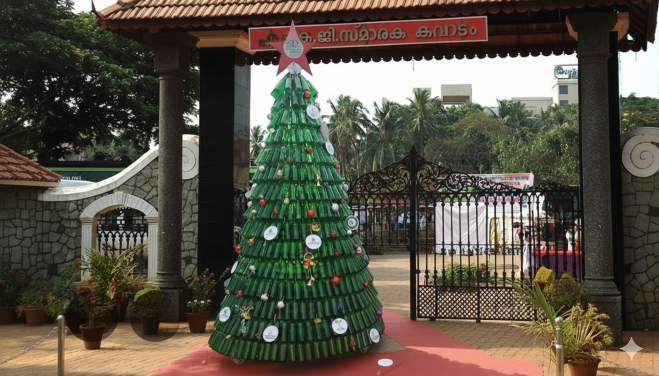 മദ്യക്കുപ്പികളാൽ ക്രിസ്തുമസ് ട്രീ; ഗുരുവായൂരിൽ നഗരസഭയുടെ നടപടി പ്രതിഷേധാർഹമെന്ന് ബിജെപി