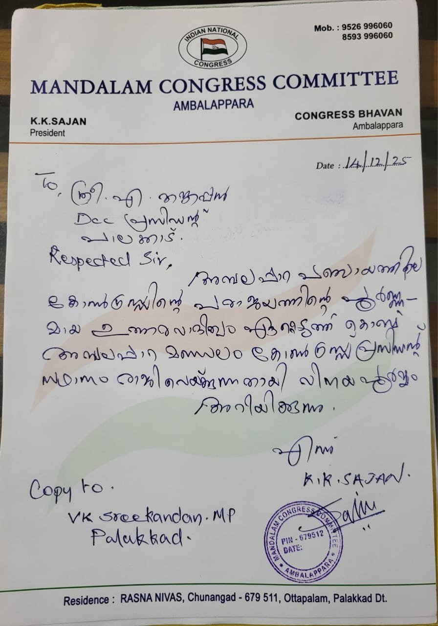 എന്നാൽ ധാരണക്കപ്പുറത്ത് വികസന മുന്നണി മൽസരിക്കുന്ന വാർഡുകളിലും സ്ഥാനാർഥികളെ നിർത്തി ധാരണ അട്ടിമറിച്ചു. പല വാർഡുകളിലും വളരെ വൈകി സ്ഥാനാർഥികളെ നിശ്ചയിച്ചതും തിരിച്ചടിയായി. ബ്ലോക്ക് പഞ്ചായത്ത് അമ്പലപ്പാറ, പുലാപ്പറ്റശ്ശേരി ഡിവിഷനുകളിലാണ് കോൺഗ്രസിന് സ്ഥാനാർഥികൾ ഇല്ലാതിരുന്നത്. ഈ ഡിവിഷനുകളിൽ സിപിമ്മും ബിജെപിയും നേരിട്ടായിരുന്നു മൽസരം. പരാജയത്തിൻ്റെ പൂർണ ഉത്തരവാദിത്വം ഏറ്റെടുത്തു കൊണ്ടാണ് മണ്ഡലം കോൺഗ്രസ് പ്രസിഡൻ്റ് കെ.കെ സാജൻ ഡിസിസി പ്രസിഡൻ്റിന് രാജിക്കത്ത് നൽകിയത്.
