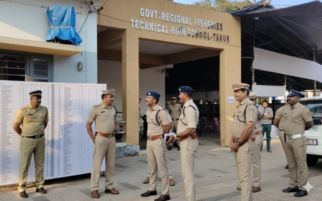 മലപ്പുറം: തദ്ദേശതെരഞ്ഞെടുപ്പ് നടക്കുന്ന താനൂർ, പരപ്പനങ്ങാടി പ്രദേശങ്ങളിൽ പ്രശ്നബാധിത ബൂത്തുകളിൽ മലപ്പുറം ജില്ലാ പോലീസ് മേധാവി വിശ്വനാഥ് ആർ ഐ.പി.എസ് സന്ദർശിച്ചു സുരക്ഷ ക്രമീകരണങ്ങൾ വിലയിരുത്തി. താനൂർ ഡി.വൈ.എസ്.പി പ്രമേദ് പി , വിജിലൻ ഡി.വൈ എസ്.പി. ഗംഗാധരൻ എന്നിവരുടെ കീഴിൽ താനൂർ പരപ്പനങ്ങാടി പ്രദേശങ്ങളിൽ വൻ പോലീസ് സുരക്ഷ സംവിധാനമാണ് ഒരുക്കിയിട്ടുള്ളത്.