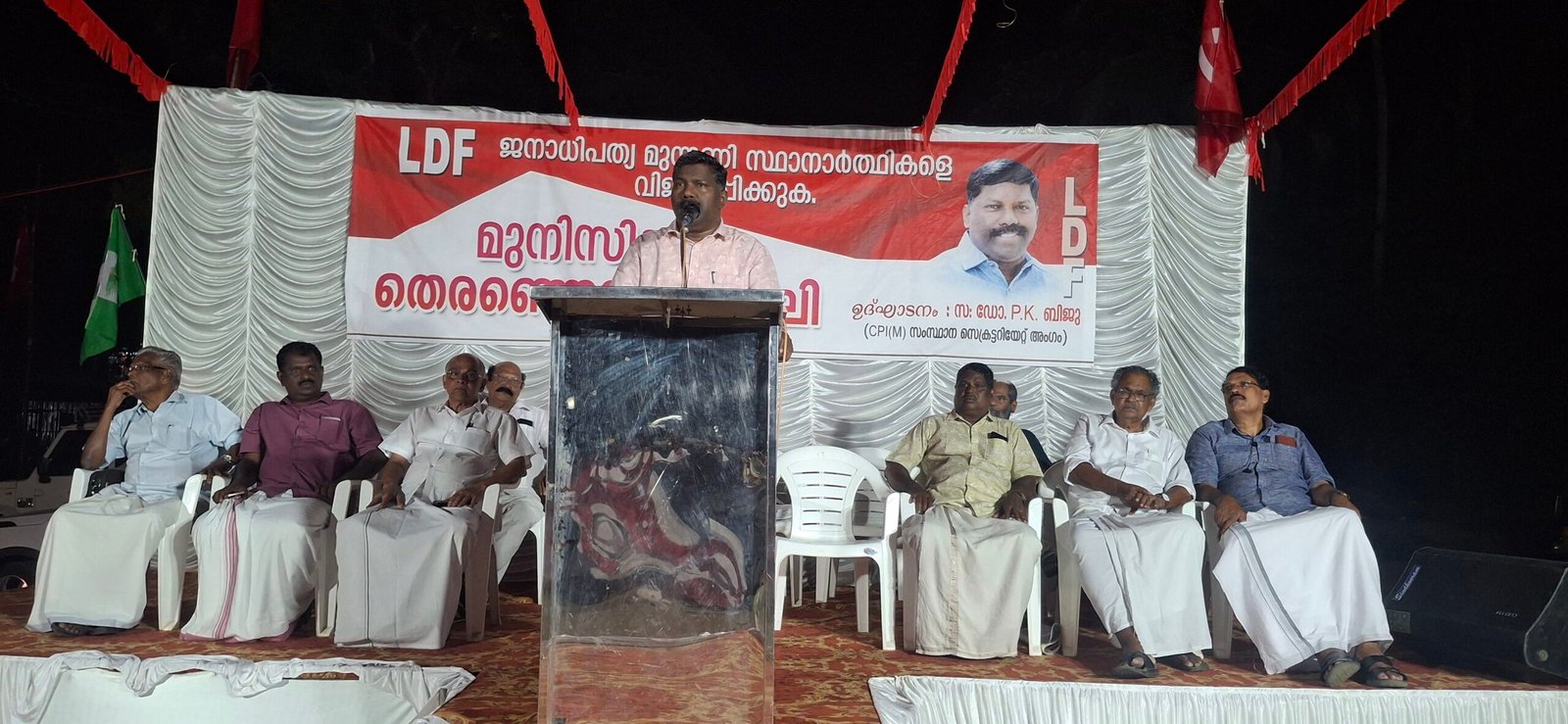 തുടര്ന്ന് നടന്ന പൊതുസമ്മേളനം സിപിഎം സംസ്ഥാന സെക്രട്ടറിയേറ്റംഗം ഡോ.പി കെ ബിജു ഉദ്ഘാടനം ചെയ്തു.മുനിസിപ്പല് തെരഞ്ഞെടുപ്പ് കമ്മറ്റി പ്രസിഡണ്ട് അനില് കദളിക്കാടന് അധ്യക്ഷത വഹിച്ചു. സിപിഎം സംസ്ഥാന കൗണ്സിലംഗം എം എം വര്ഗ്ഗീസ് സിപിഐ ജില്ലാ എക്സിക്യൂട്ടീവംഗം സി സി വിപിന് ചന്ദ്രന് ആര്ജെഡി സംസ്ഥാന സെക്രട്ടറി ജോസ് തെറ്റയില്, സിപിഐ മണ്ഡലം സെക്രട്ടറി സി വി ജോഫി സിപിഎം ഏരിയ സെക്രട്ടറി കെ എസ് അശോകന് സിപിഐ ജില്ലാ കൗണ്സിലംഗം എ കെ ചന്ദ്രന് ആര്ജെഡി മണ്ഡലം പ്രസിഡണ്ട് പോള് പുല്ലന് എല്ഡിഎഫ് കണ്വീനര് ടി പി ജോണി തുടങ്ങിയവര് സംസാരിച്ചു.