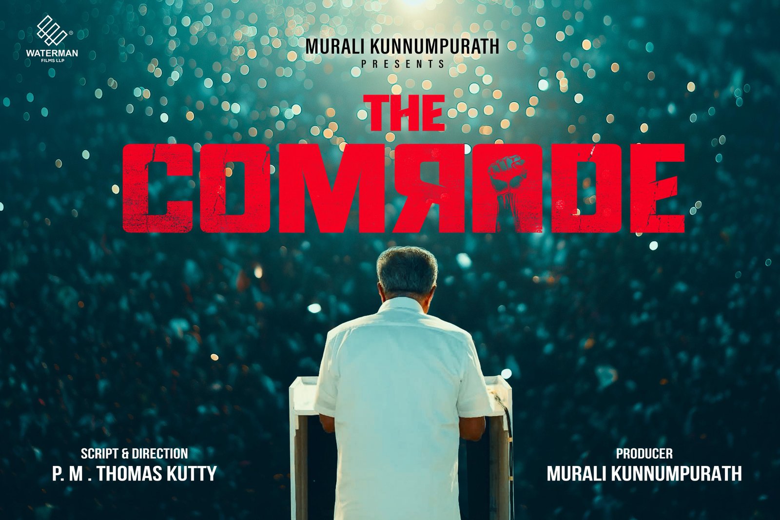 വെള്ളം, സുമതി വളവ് തുടങ്ങിയ ചിത്രങ്ങൾ നിർമ്മിച്ച മുരളി കുന്നുംപുറത്ത് വാട്ടർമാൻ ഫിലിംസിന്റെ ബാനറിൽ നിർമ്മിക്കുന്ന ബിഗ് ബഡ്ജറ്റ് ചിത്രമാണിത്. ദി കോമ്രേഡ് ചിത്രത്തിന്റെ രചനയും സംവിധാനവും നിർവഹിക്കുന്നത് പി.എം. തോമസ് കുട്ടിയാണ്. നാളിതുവരെ മലയാളത്തിൽ ഇറങ്ങിയ പൊളിറ്റിക്കൽ ചിത്രങ്ങളിൽ നിന്ന് വളരെ വ്യത്യസ്തതയുള്ള ജോണറിൽ ഒരുങ്ങുന്ന ചിത്രം ദി കോമ്രേഡ് കഴിഞ്ഞ എൺപതു വർഷത്തെ കേരള രാഷ്ട്രീയത്തിന്റെ സംഭവ വികാസങ്ങൾ പശ്ചാത്തലമാക്കി പ്രേക്ഷകന് തിയേറ്റർ എക്സ്പീരിയൻസ് സമ്മാനിക്കുന്ന രീതിയിലാണ് ഒരുങ്ങുന്നതെന്നു സംവിധായകൻ തോമസ് കുട്ടി അഭിപ്രായപ്പെട്ടു.