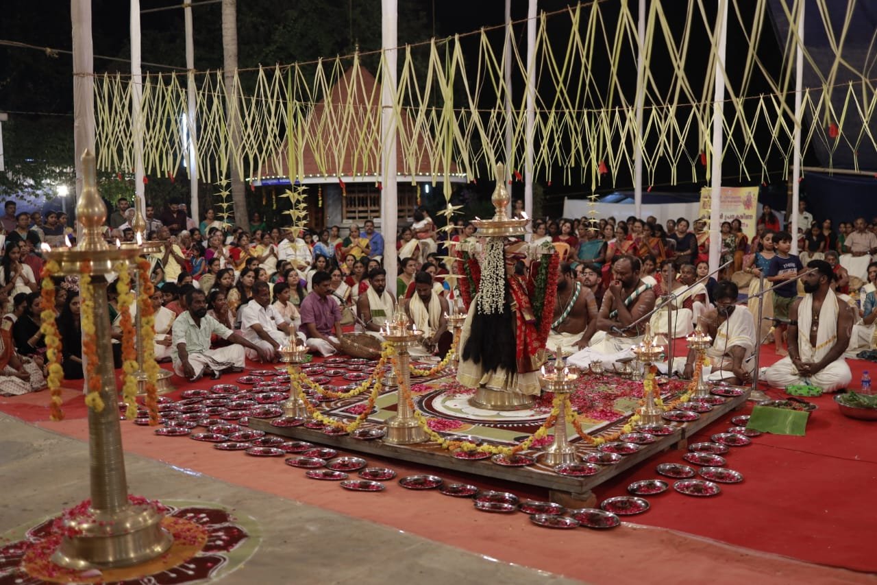 തൃശ്ശൂർ: ചാലക്കുടി.മുരിങ്ങൂര്‍ ശ്രീ ചീനിക്കല്‍ ഭഗവതി ക്ഷേത്രത്തിലെ ആറാട്ട് മഹോത്സവത്തിന്റെ ഭാഗമായി സംഘടിപ്പിച്ച മഹാ ഭഗവതി സേവയില്‍ നിരവധി ഭക്ത ജനങ്ങള്‍ പങ്കാളികളായി.ക്ഷേത്രത്തില്‍ എത്തി ചേര്‍ന്ന നൂറു കണക്കിന് ഭക്ത ജനങ്ങളെ പങ്കെടുപ്പി്ച്ച് കൊണ്ട് നടന്ന മഹാ ഭഗവതി സേവക്ക് ക്ഷേത്രം മേല്‍ശാന്തി ഷിബു ശാന്തിയും,വിഷ്ണു ശാന്തിയും മുഖ്യ കാര്‍മ്മികത്വം വഹിച്ചു.ക്ഷേത്രത്തില്‍ വലിയ നിര്മ്മാലക്കും ചുറ്റു വിളക്കിനും, ദുര്‍ഗ്ഗദേവിക്ക് വിശേഷാല്‍ പൂജക്കും ശേഷമാണ് മഹാഭഗവതി സേവ നടത്തിയത്. മഹോത്സവത്തിന്റെ ഭാഗമായി വര്‍ഷത്തിലൊരിക്കലാണ് മുഴുവന്‍ ഭക്ത ജനങ്ങളേയും പങ്കെടുപ്പിച്ചു […]