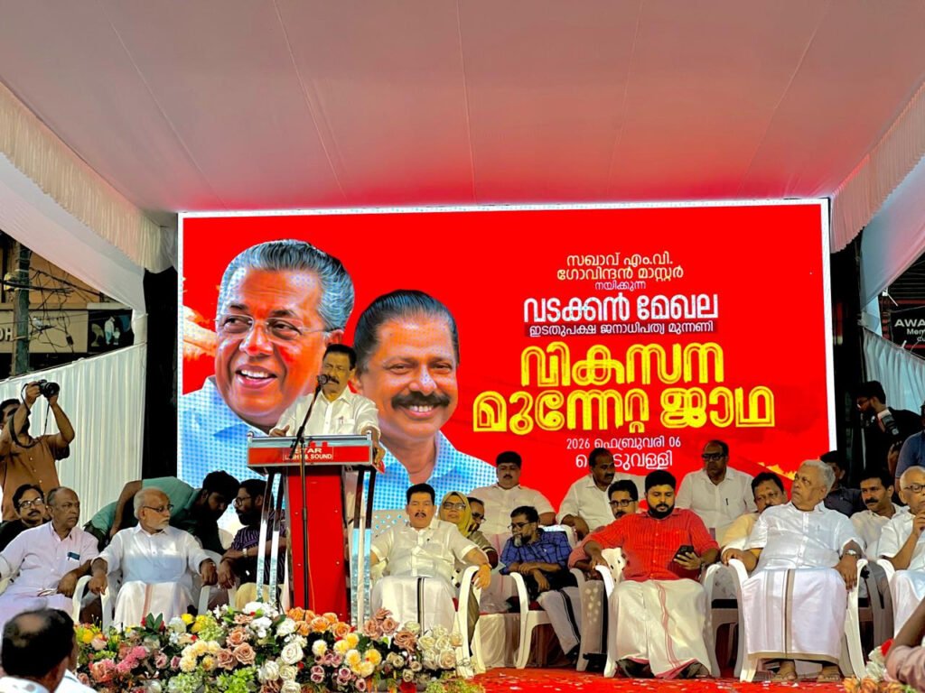 കോഴിക്കോട്: സിപിഐഎം സംസ്ഥാന സെക്രട്ടറി എം വി ഗോവിന്ദൻ മാസ്റ്റർ നയിക്കുന്ന വടക്കൻ മേഖലാ വികസന മുന്നേറ്റ ജാഥയ്ക് കൊടുവള്ളിയിൽ ഉജ്ജ്വല സ്വീകരണം. മുക്കത്തെ സ്വീകരണത്തിനുശേഷം കൊടുവള്ളിയിലെത്തിയ ജാഥയെ മണ്ഡലാതിർത്തിയായ കൊടുവള്ളി നഗരസഭയിലെ കുറുങ്ങാട്ടക്കടവ് പാലത്തിന് സമീപം സ്വീകരിച്ച് ജില്ലാ മണ്ഡലം നേതാക്കളുടെ നേതൃത്വത്തിൽ നിരവധി വാഹനങ്ങളുടെ അകമ്പടിയോടെ സ്വീകരകേന്ദ്രമായ കൊടുവള്ളിയിലേക്ക് ആനയിച്ചു. കൊടുവള്ളി ടൗണിൽ നിന്നും നൂറ് മീറ്റർ അകലെ നിന്ന് ജാഥാ ക്യാപ്ടനെ തുറന്ന ജീപ്പിൽ ശിങ്കാരിമേളം, ബാൻ്റ് മേളം തുടങ്ങിയ വാദ്യമേളങ്ങളോടെ അകമ്പടിയോടെ […]